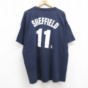 XL★古着 マジェスティック 半袖 ビンテージ Tシャツ メンズ 00年代 00s MLB ニューヨークヤンキース ゲイソーシェフィールド 11 大きいサイズ コットン クルーネック 紺 メジャーリーグ ベースボール 野球