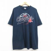 XL★古着 半袖 ビンテージ Tシャツ メンズ 00年代 00s MLB ボストンレッドソックス コットン クルーネック 紺 メジャーリーグ ベースボール 野球