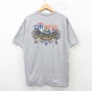 XL★古着 マジェスティック 半袖 ビンテージ Tシャツ メンズ 00年代 00s MLB ニューヨークメッツ クルーネック 薄グレー 霜降り メジャーリーグ ベースボール 野球