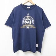 XL★古着 マジェスティック 半袖 ビンテージ Tシャツ メンズ 00年代 00s MLB ニューヨークヤンキース クルーネック 紺 メジャーリーグ ベースボール 野球