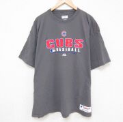 XL★古着 マジェスティック 半袖 ビンテージ Tシャツ メンズ 00年代 00s MLB シカゴカブス 大きいサイズ ロング丈 コットン クルーネック 濃グレー メジャーリーグ ベースボール 野球