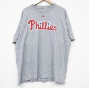 XL★古着 マジェスティック 半袖 ビンテージ Tシャツ メンズ 00年代 00s MLB フィラデルフィアフィリーズ 32 大きいサイズ クルーネック グレー 霜降り メジャーリーグ ベースボール 野球