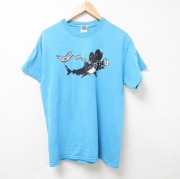 L★古着 半袖 ビンテージ Tシャツ メンズ 00年代 00s 天国 コットン クルーネック 水色