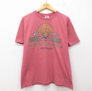L★古着 半袖 ビンテージ Tシャツ メンズ 90年代 90s 貝殻 コットン クルーネック USA製 ピンク系