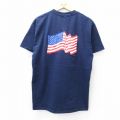 【商品名】 L★古着 フルーツオブザルーム 半袖 ビンテージ Tシャツ メンズ 00年代 00s 星条旗 ハズマット コットン クルーネック 紺