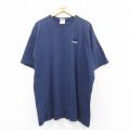 XL★古着 アディダス adidas 半袖 ビンテージ Tシャツ メンズ 90年代 90s ワンポイントロゴ 大きいサイズ ロング丈 コットン クルーネック USA製 紺 ネイビー 25aug04 中古