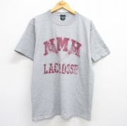 XL★古着 MVスポーツ 半袖 ビンテージ Tシャツ メンズ 90年代 90s NMH ラクロス クルーネック グレー 霜降り