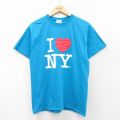 M★古着 半袖 ビンテージ Tシャツ メンズ 00年代 00s ニューヨーク コットン クルーネック 水色 25aug07 中古