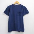 M★古着 半袖 ビンテージ Tシャツ メンズ 80年代 80s 無地 胸ポケット付き クルーネック 紺 ネイビー 25aug12 中古