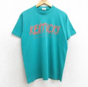L★古着 ヘインズ 半袖 ビンテージ Tシャツ メンズ 80年代 80s ケンタッキー クルーネック USA製 青緑