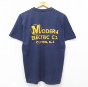 L★古着 ジャージーズ 半袖 ビンテージ Tシャツ メンズ 80年代 80s MODERN ELECTRIC 胸ポケット付き クルーネック USA製 紺