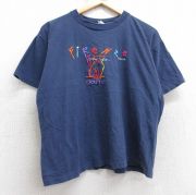 L★古着 半袖 ビンテージ Tシャツ メンズ 00年代 00s 鳥 コットン クルーネック 紺