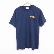 L★古着 半袖 ビンテージ Tシャツ メンズ 90年代 90s 無地 胸ポケット付き クルーネック 紺