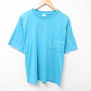 L★古着 半袖 ビンテージ Tシャツ メンズ 80年代 80s 無地 胸ポケット付き クルーネック USA製 水色