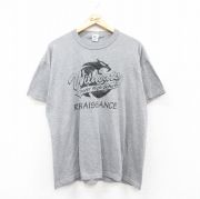XL★古着 半袖 ビンテージ Tシャツ メンズ 00年代 00s 魚 大きいサイズ クルーネック グレー 霜降り