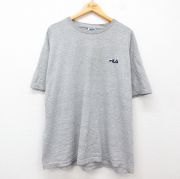 XL★古着 フィラ FILA 半袖 ビンテージ Tシャツ メンズ 90年代 90s ワンポイントロゴ 大きいサイズ クルーネック グレー 霜降り