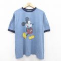 【商品名】 XL★古着 半袖 ビンテージ Tシャツ メンズ 00年代 00s ディズニー ミッキー 大きいサイズ クルーネック 紺 霜降り リンガー