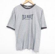 XL★古着 オールドネイビー 半袖 ビンテージ Tシャツ メンズ 00年代 00s ビッグロゴ 大きいサイズ クルーネック グレー 霜降り リンガー