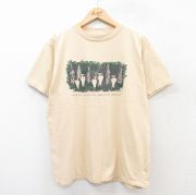 L★古着 半袖 ビンテージ Tシャツ メンズ 90年代 90s 犬 コットン クルーネック 薄ベージュ