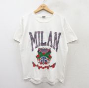 L★古着 半袖 ビンテージ Tシャツ メンズ 90年代 90s MILAN 花 コットン クルーネック USA製 白