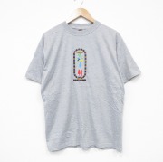 L★古着 半袖 ビンテージ Tシャツ メンズ 00年代 00s グランパ 刺繍 コットン クルーネック 薄グレー 霜降り