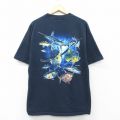 XL★古着 半袖 ビンテージ Tシャツ メンズ 90年代 90s 魚 胸ポケット付き コットン クルーネック USA製 紺 ネイビー 25aug22 中古