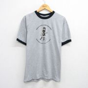 L★古着 半袖 ビンテージ Tシャツ メンズ 00年代 00s 女の子 スタッフ クルーネック グレー 霜降り リンガー