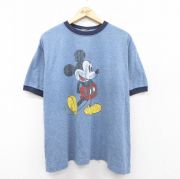 XL★古着 半袖 ビンテージ Tシャツ メンズ 00年代 00s ディズニー ミッキー 大きいサイズ クルーネック 紺 霜降り リンガー