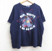 XL★古着 半袖 ビンテージ Tシャツ メンズ 00年代 00s ディズニー ミッキー ミニー 大きいサイズ コットン クルーネック 紺