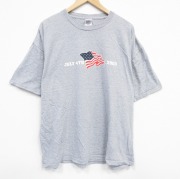 XL★古着 半袖 ビンテージ Tシャツ メンズ 00年代 00s 星条旗 大きいサイズ クルーネック グレー 霜降り