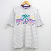 XL★古着 半袖 ビンテージ Tシャツ メンズ 90年代 90s ヤシの木 魚 コットン クルーネック USA製 グレー他 ボーダー