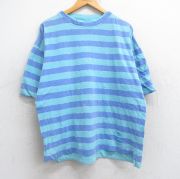 XL★古着 半袖 ビンテージ Tシャツ メンズ 90年代 90s USAオリンピック コットン クルーネック 水色他 ボーダー