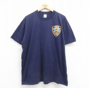 XL★古着 ジャージーズ 半袖 ビンテージ Tシャツ メンズ 90年代 90s ポリス コットン クルーネック USA製 濃紺