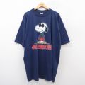 【商品名】 XL★古着 半袖 ビンテージ Tシャツ メンズ 90年代 90s ピーナッツ スヌーピー 大きいサイズ ロング丈 クルーネック USA製 紺【spe】