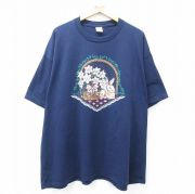 XL★古着 ジャージーズ 半袖 ビンテージ Tシャツ メンズ 90年代 90s ウサギ 花 大きいサイズ クルーネック USA製 紺