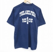 XL★古着 フルーツオブザルーム 半袖 ビンテージ Tシャツ メンズ 90年代 90s フィラデルフィア 大きいサイズ クルーネック USA製 紺