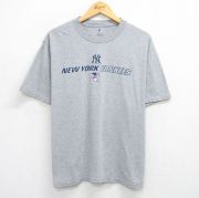 L★古着 半袖 ビンテージ Tシャツ メンズ 00年代 00s MLB ニューヨークヤンキース クルーネック グレー 霜降り メジャーリーグ ベースボール 野球