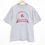 M★古着 半袖 ビンテージ Tシャツ メンズ 00年代 00s MLB ボストンレッドソックス ワールドシリーズ クルーネック グレー 霜降り メジャーリーグ ベースボール 野球