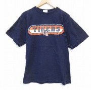 L★古着 半袖 ビンテージ Tシャツ メンズ 00年代 00s MLB デトロイトタイガース コットン クルーネック 濃紺 メジャーリーグ ベースボール 野球