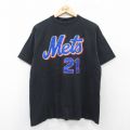 【商品名】 L★古着 マジェスティック 半袖 ビンテージ Tシャツ メンズ 00年代 00s MLB ニューヨークメッツ ビルパルシファー 21 コットン クルーネック 黒 メジャーリーグ ベースボール 野球
