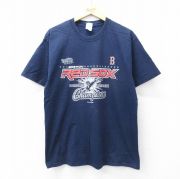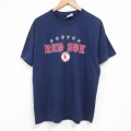 【50%OFF】M★古着 ヘインズ Hanes 半袖 ビンテージ Tシャツ メンズ 00年代 00s MLB ボストンレッドソックス クルーネック 紺 ネイビー メジャーリーグ ベースボール 野球 25may24 中古