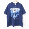 XL★古着 マジェスティック 半袖 ビンテージ Tシャツ メンズ 00年代 00s MLB ニューヨークヤンキース クルーネック 紺 メジャーリーグ ベースボール 野球