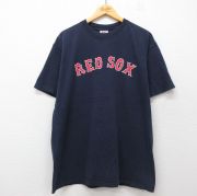 XL★古着 半袖 ビンテージ Tシャツ メンズ 00年代 00s MLB ボストンレッドソックス コットン クルーネック 紺 メジャーリーグ ベースボール 野球