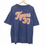 XL★古着 半袖 ビンテージ Tシャツ メンズ 00年代 00s MLBデトロイトタイガース マグリオオルドニェス 30 大きいサイズ コットン クルーネック 紺 メジャーリーグ ベースボール 野球