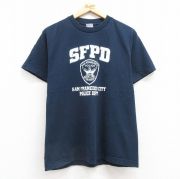 M★古着 半袖 ビンテージ Tシャツ メンズ 00年代 00s SFPD ポリス コットン クルーネック 紺