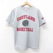 M★古着 半袖 ビンテージ Tシャツ メンズ 90年代 90s CORTLAND バスケットボール クルーネック USA製 グレー 霜降り