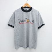 M★古着 半袖 ビンテージ Tシャツ メンズ 00年代 00s パーティーポーカー クルーネック グレー 霜降り リンガー