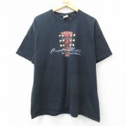 XL★古着 半袖 ビンテージ Tシャツ メンズ 00年代 00s ギター コットン クルーネック 黒