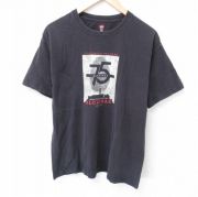 L★古着 ヘインズ 半袖 ビンテージ Tシャツ メンズ 90年代 90s 飛行機 コットン クルーネック USA製 黒