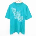 XL★古着 ヘインズ Hanes 半袖 ビンテージ Tシャツ メンズ 90年代 90s 花柄 コットン クルーネック USA製 青緑 25jun21 中古